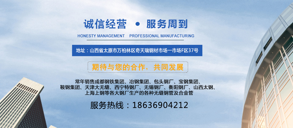 山西衡泰尚盈貿(mào)易有限責(zé)任公司是集生產(chǎn)加工經(jīng)營(yíng)于一體的無縫鋼管、不銹鋼管、合金管、鍋爐管、液壓支柱管、方管、方矩管、不銹鋼板等的大型企業(yè),常年銷售成都鋼鐵集團(tuán)、冶鋼集團(tuán)、包頭鋼廠、寶鋼集團(tuán)、鞍鋼集團(tuán)、天津大無縫、西寧特鋼廠、無錫鋼廠、衡陽鋼廠、山西太鋼、上海上鋼等各大鋼廠生產(chǎn)的各種無縫鋼管及合金管。